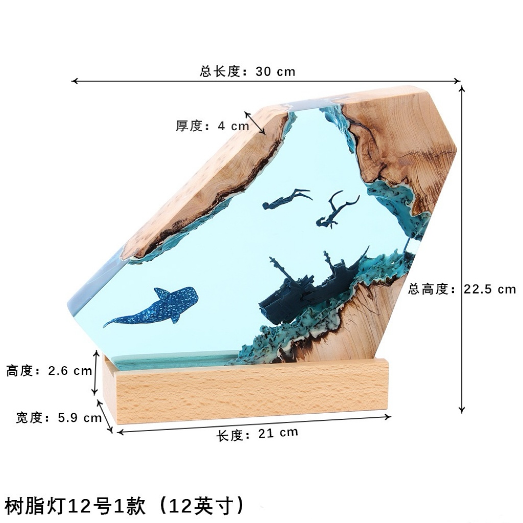 + Free ShippingA craft that combines wood and resin. The natural wood retains the original texture and the resin simulates the ocean with a clear blue colour. Built-in whale sharks, divers, shipwrecks, the scene is rich and realistic, can be used as ornaments, adding a mysterious atmosphere of the sea to the space.