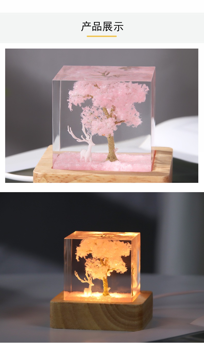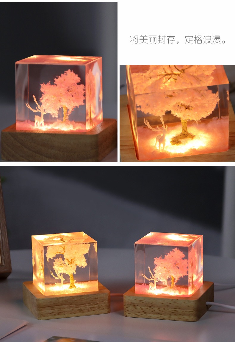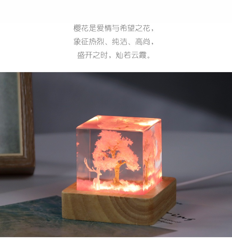 – Modelling design: it adopts transparent cube shape, with delicate patterns of trees and deer embedded inside respectively, creating a natural and harmonious atmosphere, full of art and romance.