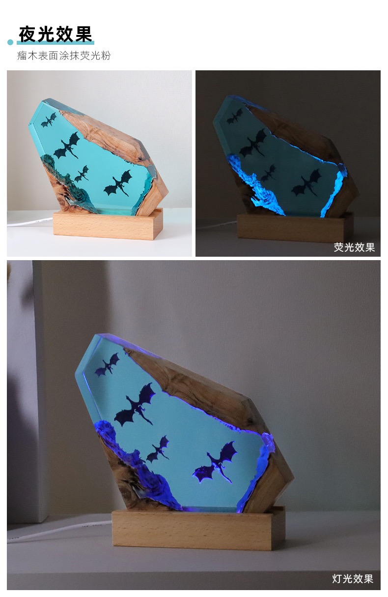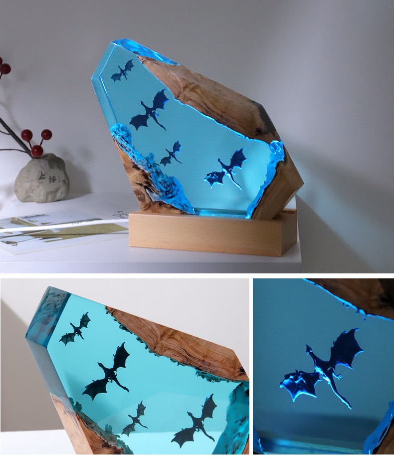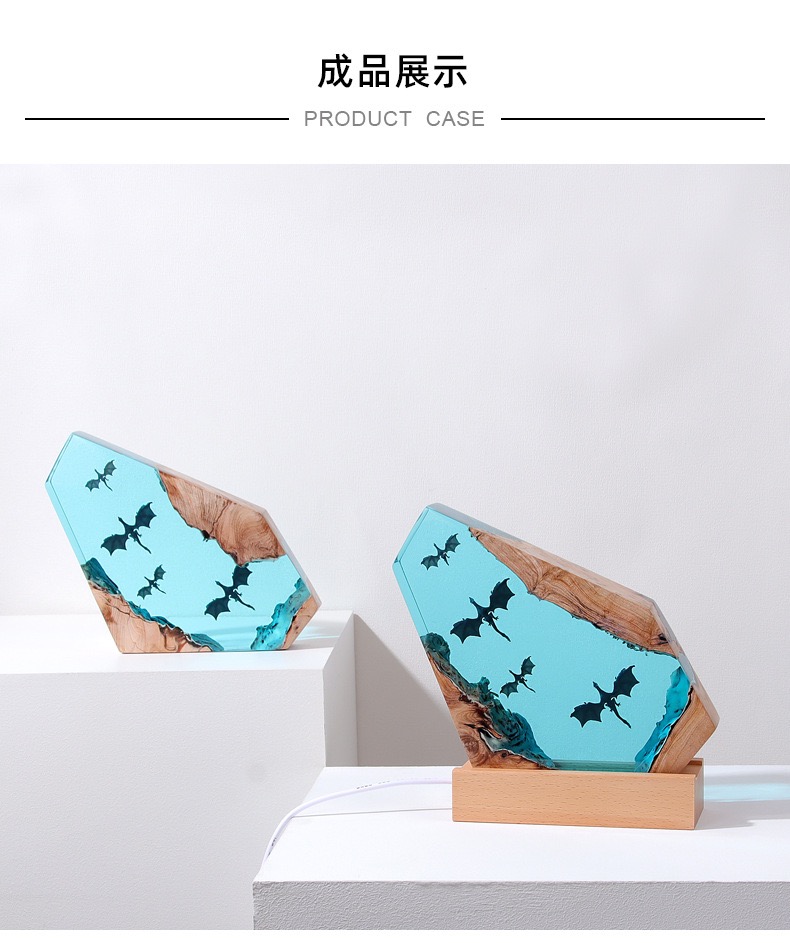 2. Material Process: It is made of resin combined with wood. The resin part is brightly coloured, showing translucent texture, and the dragon pattern embedded inside is clear and three-dimensional; the wood part retains the natural texture, forming a sharp contrast with the resin, showing the fusion of nature and art.