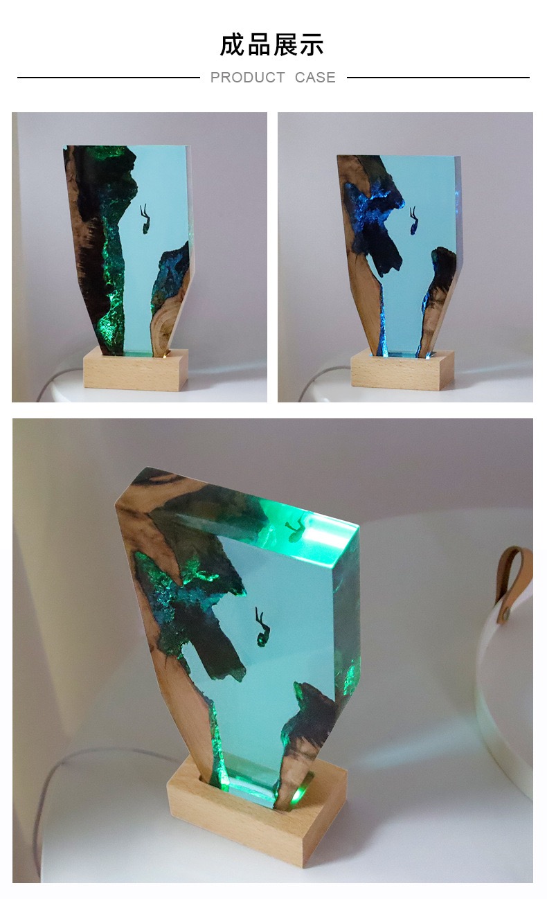 Selection of high-transparent resin, not only environmentally friendly and pollution-free, but also has excellent light transmission, can realistically simulate the clarity and depth of the ocean. The use of natural wood, but also the simplicity of the forest and the temperature of the earth into it. The combination of the two is just like nature’s ingenious work, outlining the mysterious scene of the ocean cave.