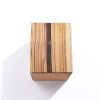 Wooden night light, presented in square shape, is made of natural wood with unique and beautiful texture. The light comes through the cracks in the wood, creating a warm and soft light, which is not only a clever use of the natural cracks in the wood to create a unique visual effect, but also adds a warm atmosphere to the environment, both practical and decorative.